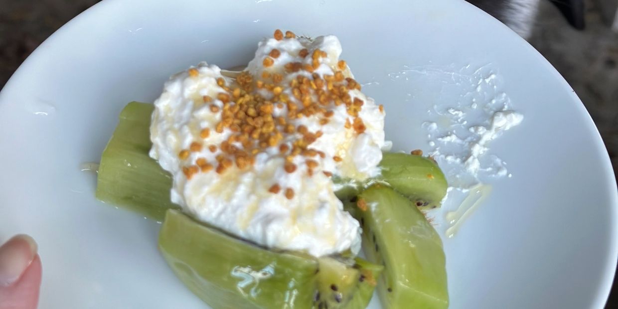 Above : 2 kiwis with 1/2 cup greek yogurt, sprinkles of bee pollen
